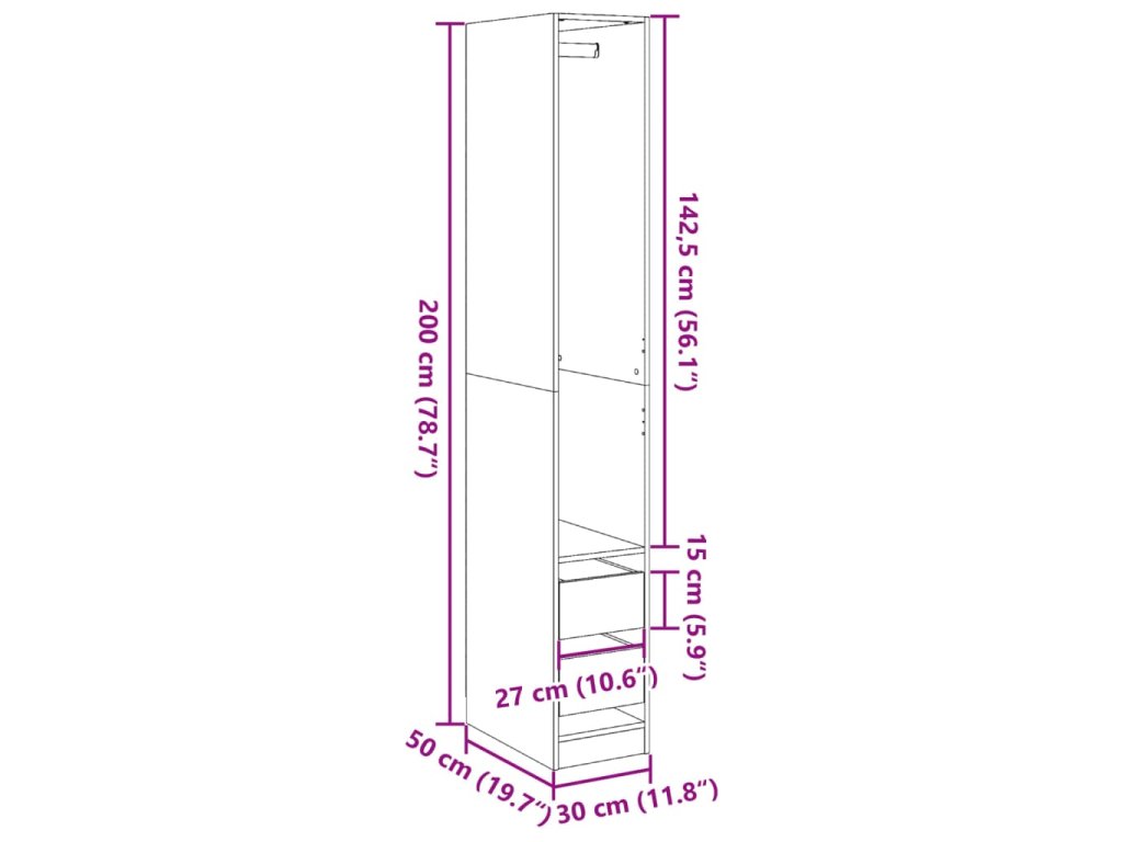 - Rozměry: 30 x 50 x 200 cm (Š x H x V)