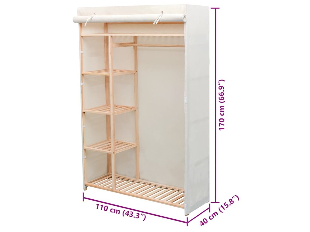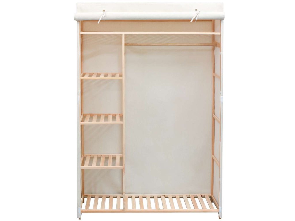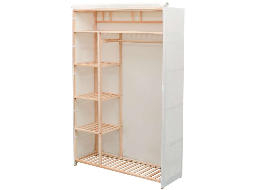Látková skříň má 5 polic, kam si můžete odložit boty, svetry, kalhoty, čepice, kabelky, atd. Vedlejší oddíl disponuje závěsnou tyčí, a je proto ideální pro skladování kabátů, šatů apod. Skříň má látkový kryt a závěs, který se sice lehko otevírá, ale přitom nepropustí dovnitř prach.