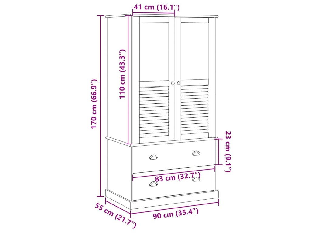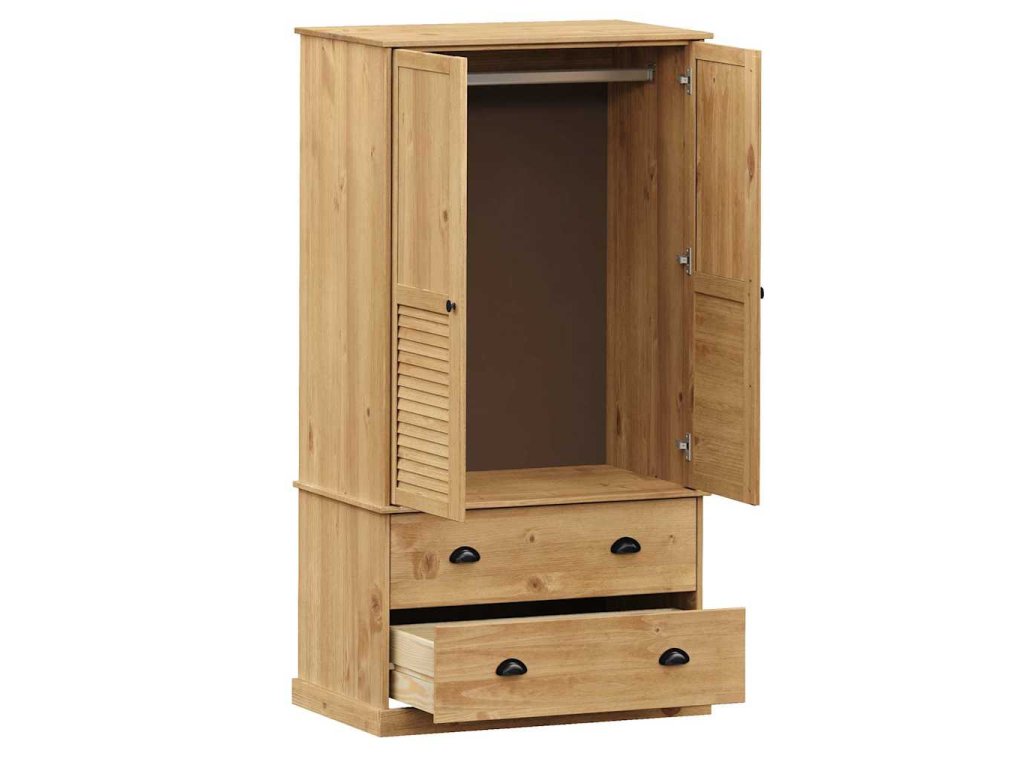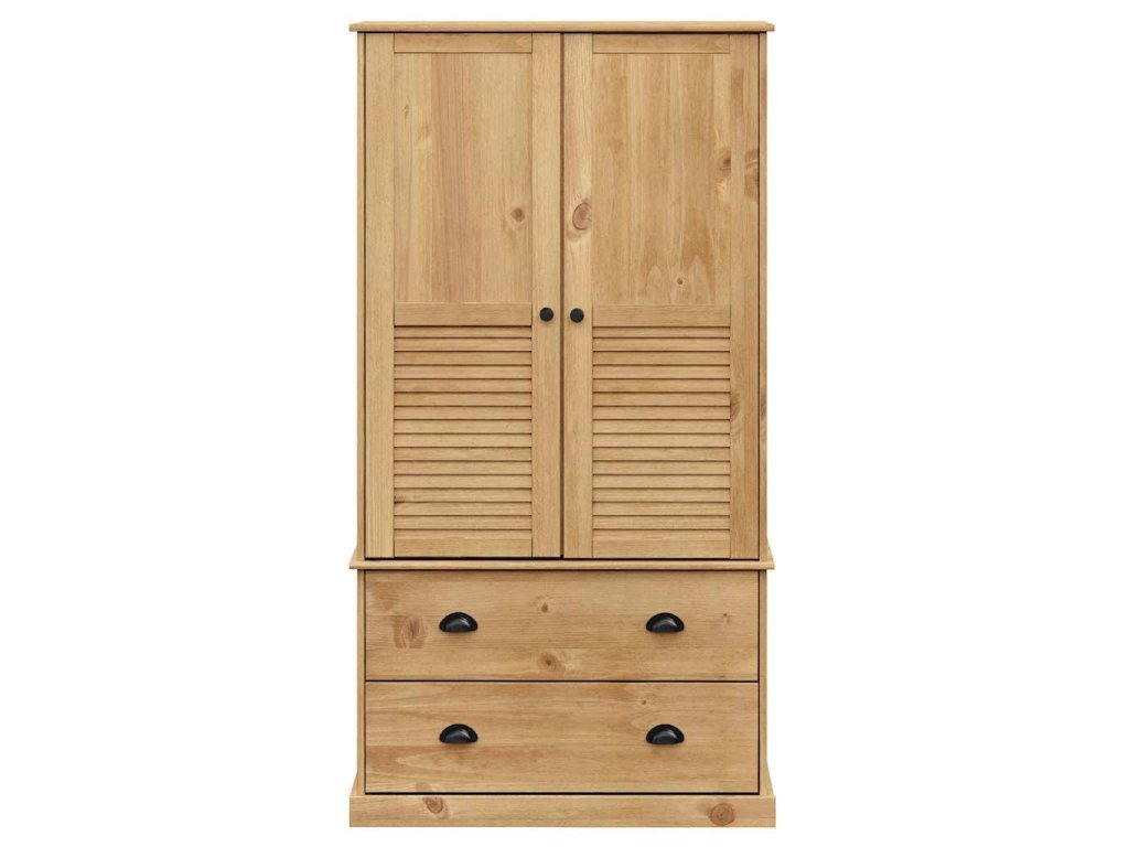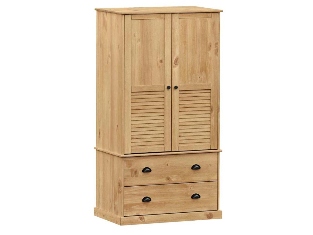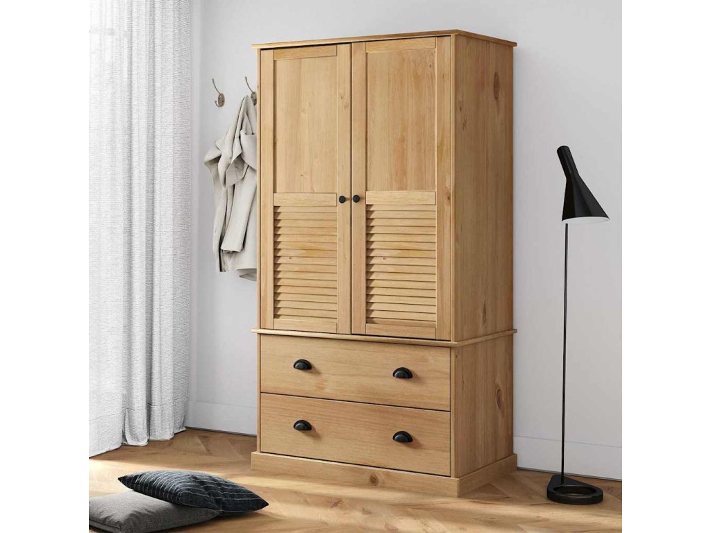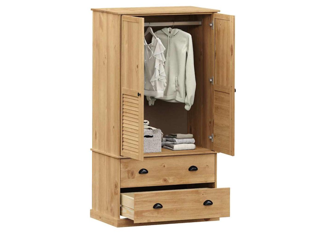 Tato klasická dřevěná šatní skříň nabízí dostatek úložného prostoru, abyste měli oblečení, boty a doplňky úhledně uspořádané.