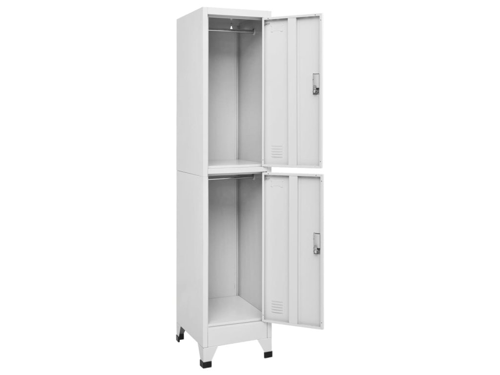 Se 2 přihrádkami s uzamykatelnými dveřmi má tato skříňka dostatek úložného prostoru pro uložení oblečení a dalších věcí. Každá přihrádka je vybavena závěsnou tyčí a držákem na jmenovku. Uzamykatelná skříňka je vyrobena z vysoce kvalitní oceli, proto má dlouhou životnost a snadno se čistí. Sestavení je opravdu snadné.