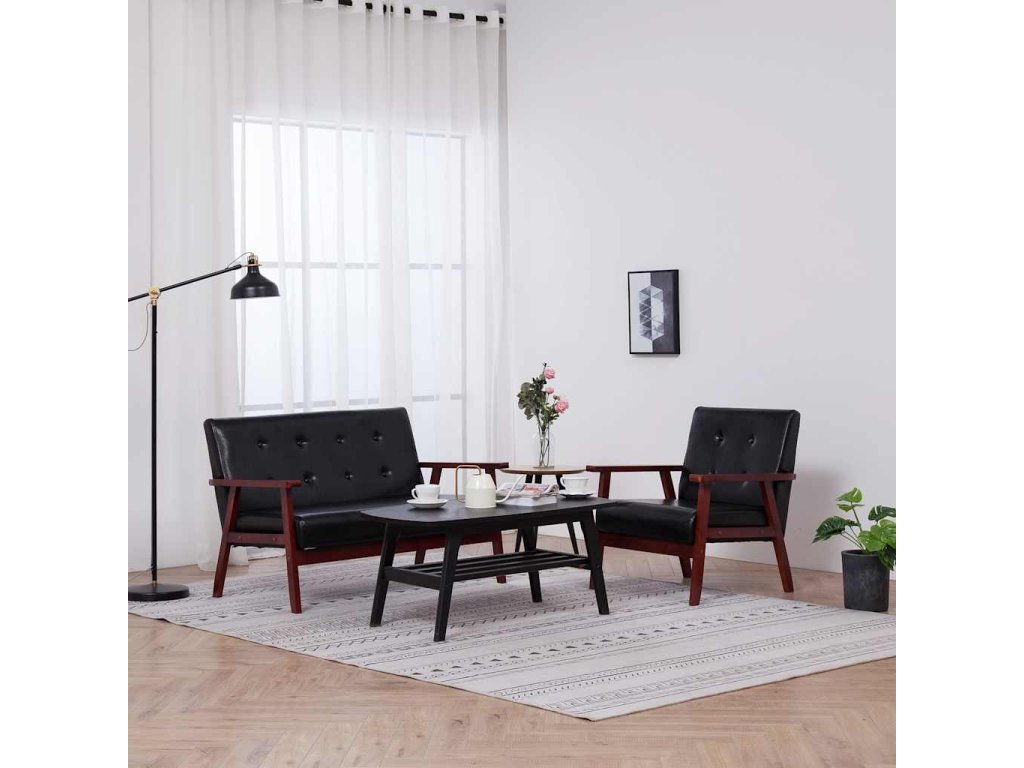 Čalounění soupravy je vyrobené z měkké umělé kůže, které je polstrované pohodlnou pěnou. Rám z dřevěného masivu pak zaručuje stabilitu a odolnost sedací soupravy.