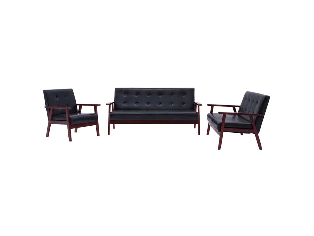 Čalounění soupravy je vyrobené z měkké umělé kůže, které je polstrované pohodlnou pěnou. Rám z dřevěného masivu pak zaručuje stabilitu a odolnost sedací soupravy.