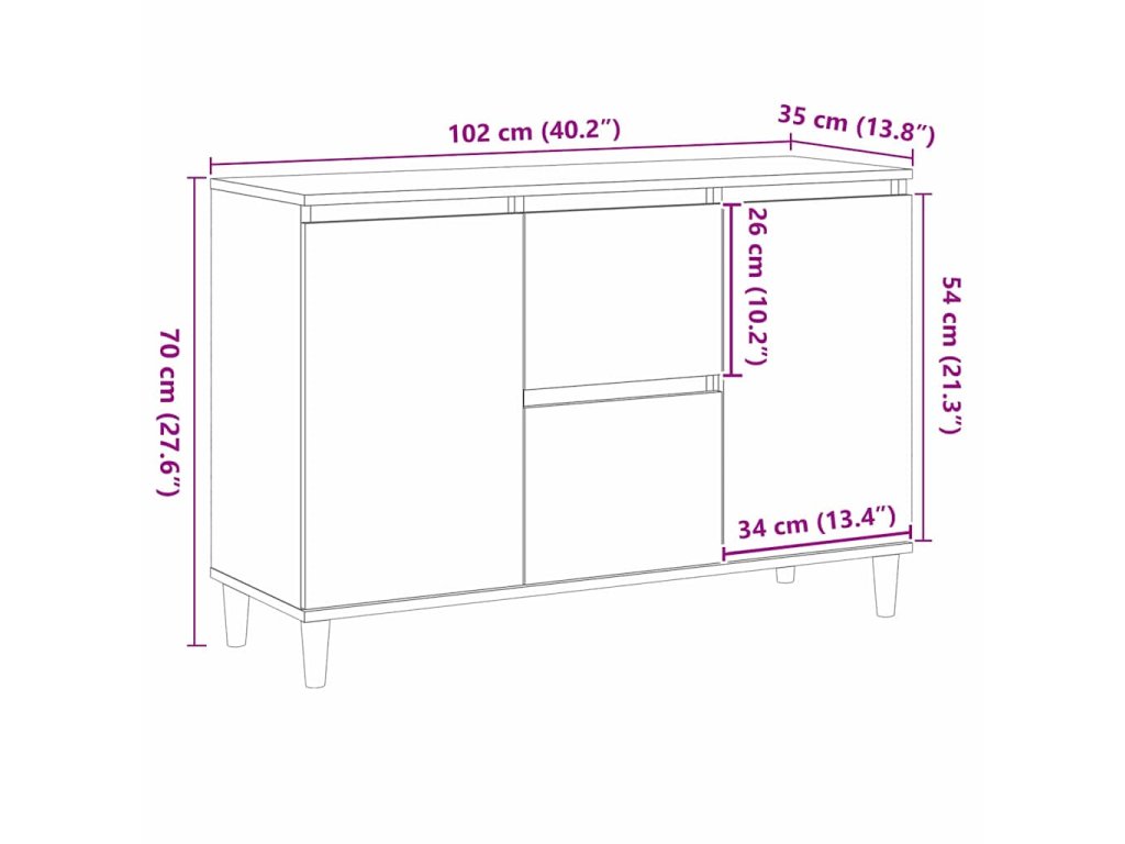 - Prostorné zásuvky: Sideboard má praktické zásuvky z kompozitního dřeva, které umožňují rychlou organizaci různých potřeb. Zásuvky se snadno otevírají a zavírají, díky čemuž má uživatel rychlý přístup k uloženým věcem, a vše zůstává na svém místě, což je pohodlné a stylové.