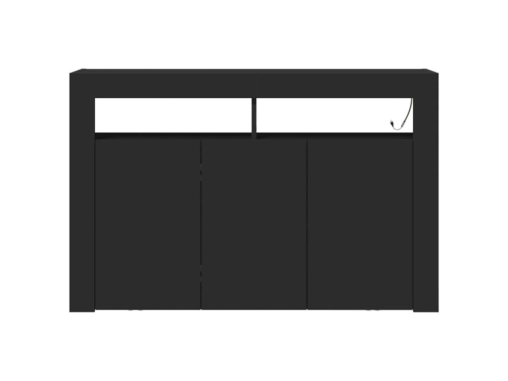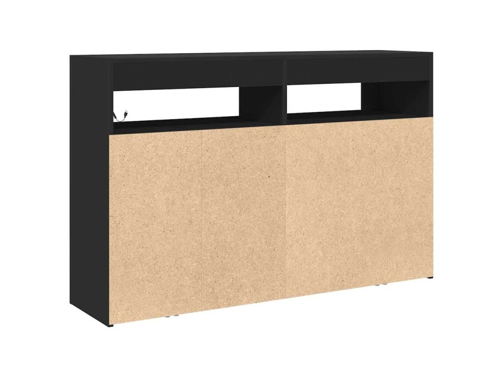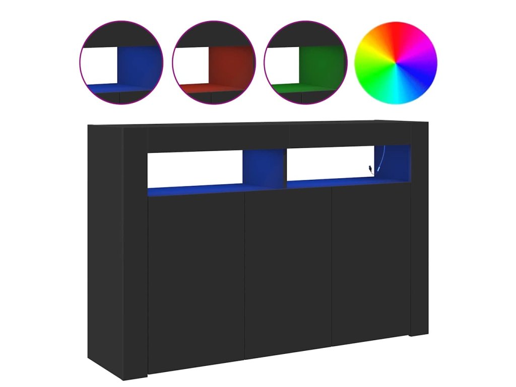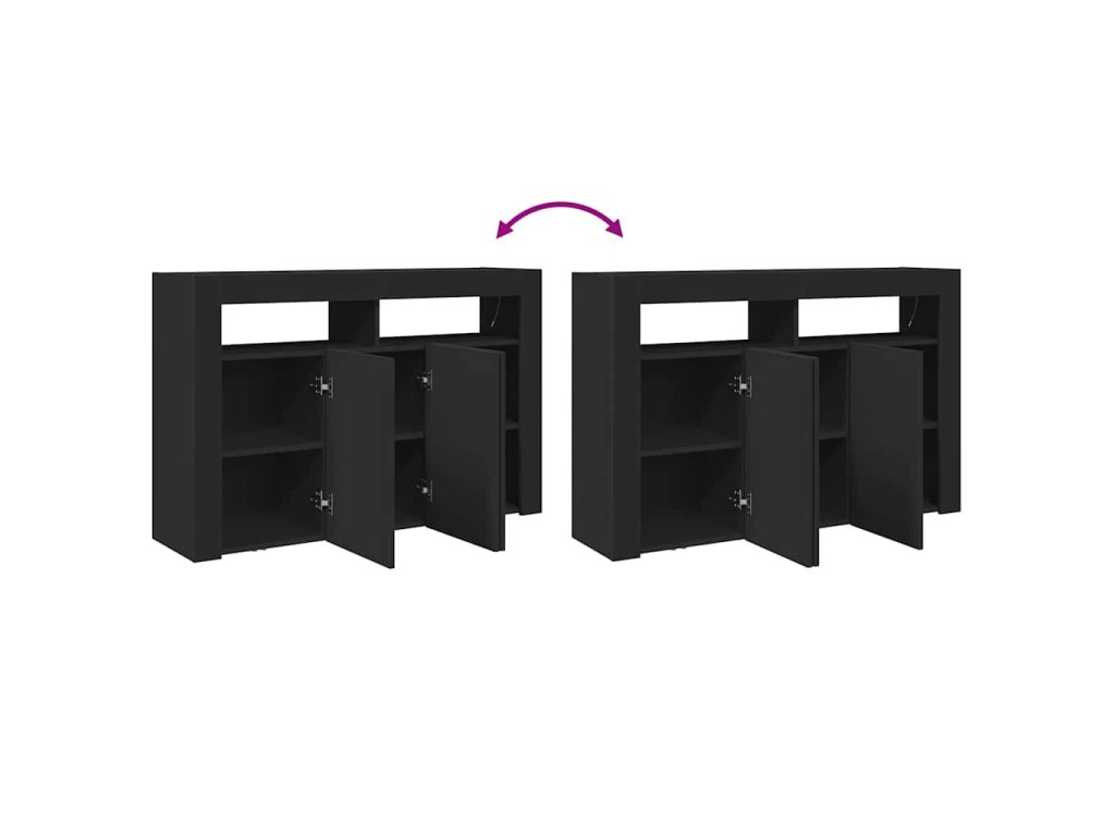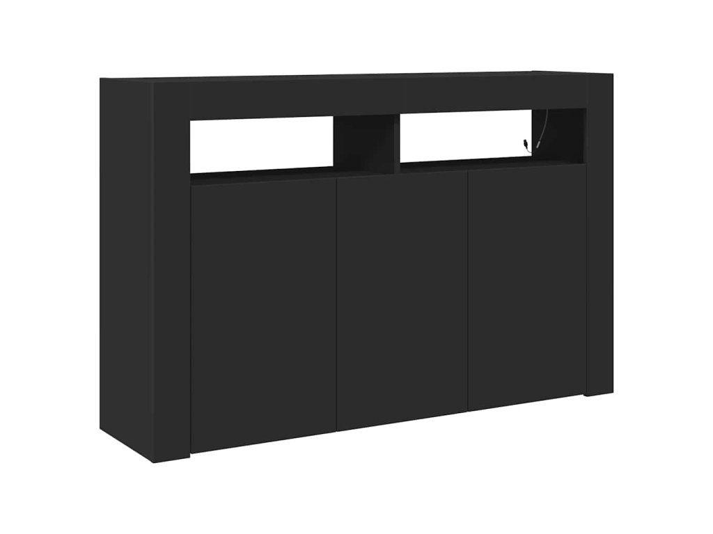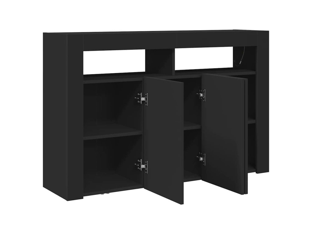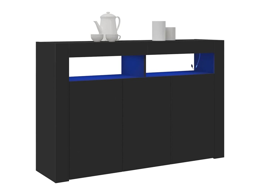 Tahle moderní černá komoda je skvělým doplňkem do každého domova, spojuje praktičnost s elegantním vzhledem. Je ideální do obýváků nebo jídelen, má minimalistickej design s úžasným černým povrchem, a navíc LED osvětlení, co vytvoří příjemnou atmosféru – skvělý pro zábavu s kámošema nebo rodinou.