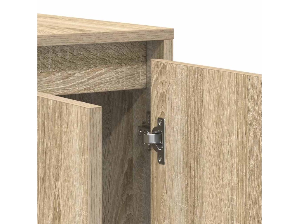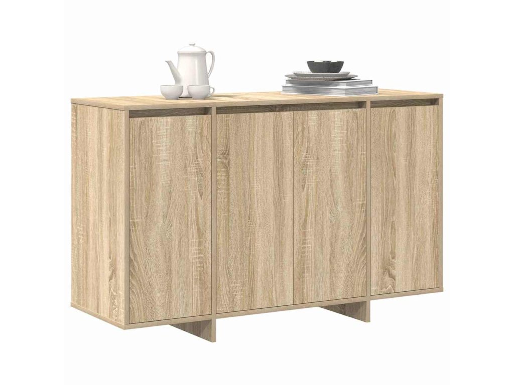 - Materiály: Servírovací skříň je vyrobená z kompozitního dřeva, což zajišťuje soudržný vzhled. Tento materiál je odolný a pevný, ideální pro všechny vaše úložné potřeby, a navíc si zachovává elegantní vzhled.