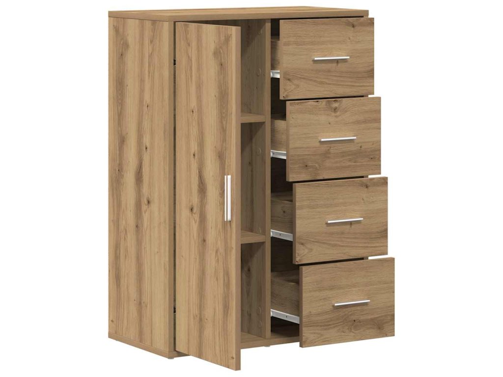 - Univerzální úložné možnosti: Skříň má police, dvířka a zásuvky, takže se skvěle hodí pro různé potřeby. Každý část je navržena tak, aby bylo snadné udržovat věci v pořádku.