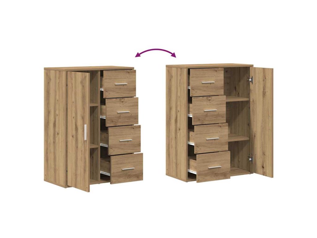 - Úprava z inženýrského dřeva: Tento materiál je nejen hezký, ale taky velmi odolný. Tak můžete na skříň spolehnout, že vydrží každodenní používání, a přitom si zachová svůj moderní vzhled.
