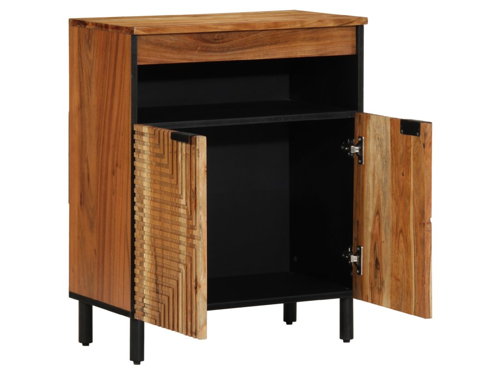 - Odolná konstrukce: Vyrobená z masivního akáciového dřeva, což je známé svou odolností, tahle skříň je navržená tak, aby vydržela. Silné materiály pomáhají udržet tvé věci bezpečné a stabilní.