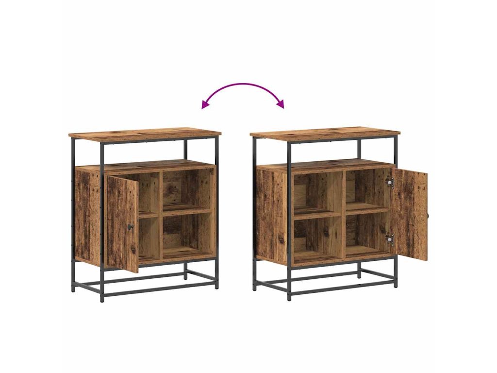 - Funkční komponenty: Bufet má hodně prostoru, takže nabízí pantové dveře a police pro různorodé úložné potřeby. Jídlo, dekorace do obývacího pokoje nebo cennosti tu najdou pohodlné místo, čímž šetříte místo a máte všechno hezky po ruce.