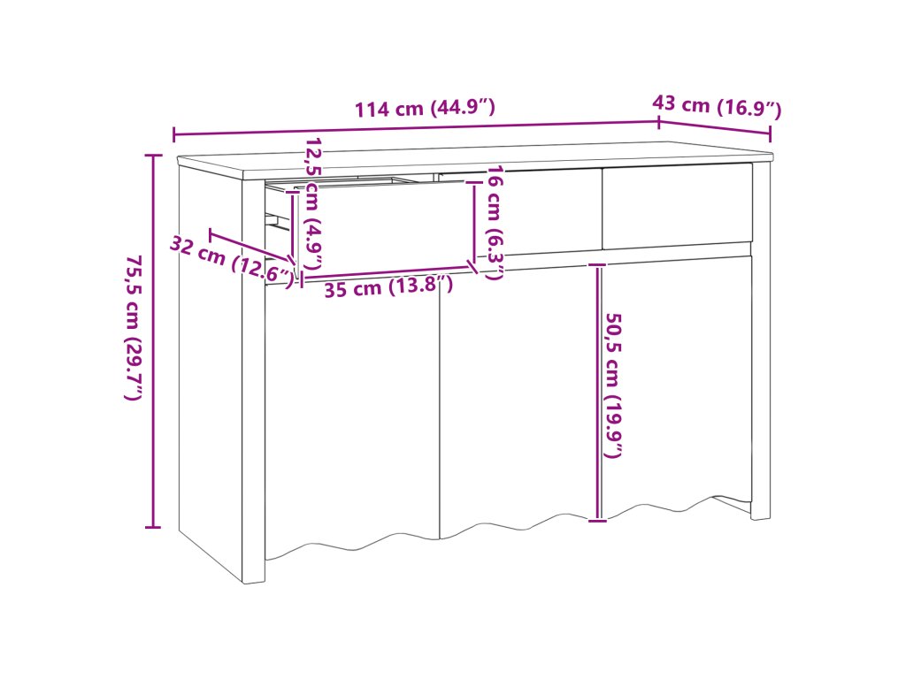 - Rozměry: 114 x 43 x 75,5 cm (Š x H x V)