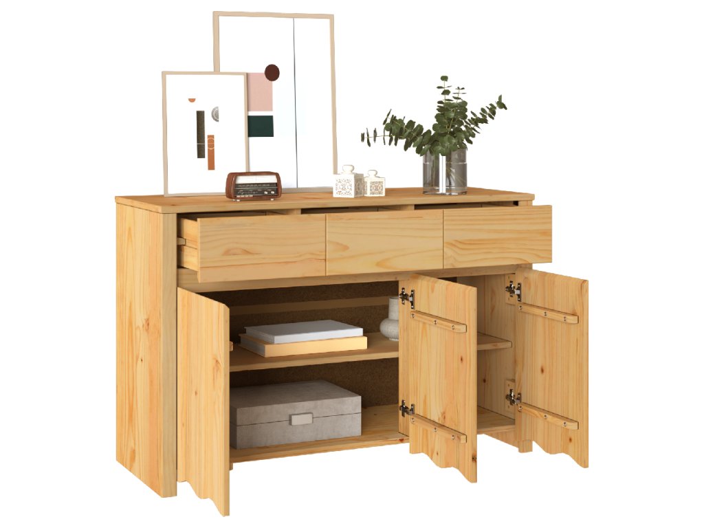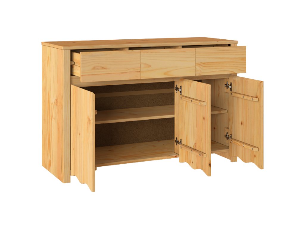 - Má tři prostorné dveře a zásuvky, poskytující bohaté úložné místo pro jídelní potřeby jako nádobí a příbory, což z ní dělá skvělou volbu pro setkání.