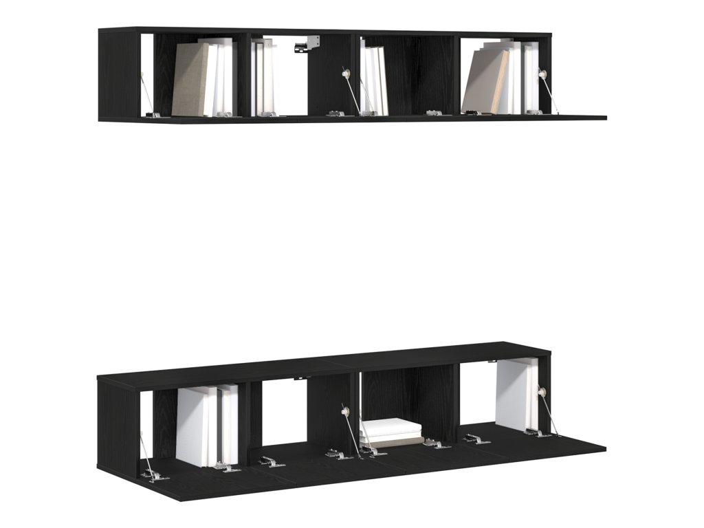 Tento nástěnný televizní stolek z černého dubu má moderní a elegantní design, co spojuje styl a praktičnost. S čtyřmi plovoucími policemi má hodně místa pro vaše mediální gadgety a vypadá dost dobře, aby se ukázal s vašimi oblíbenými ornamenty. Je skvělý pro vylepšení vašeho obýváku nebo domácího kina.
