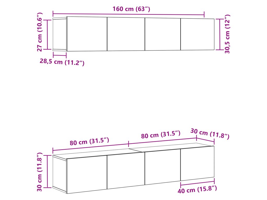 - Delivery Contains: 1 TV stand, 1 wall-mounted cabinet