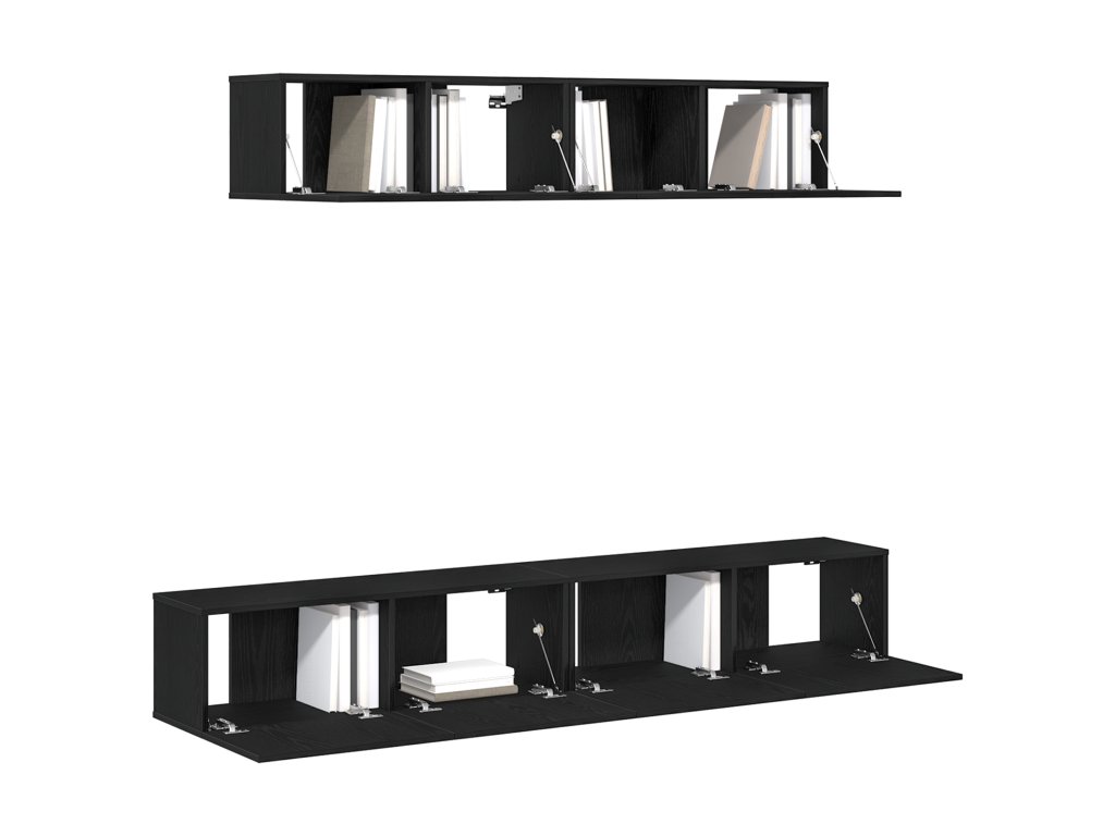 Tato elegantní černá nástěnná vitrína je skvělý doplněk do každého moderního pokoje. Je vyrobená z odolného inženýrského dřeva a má stylový matný povrch – ideální pro vystavení tvých oblíbených kousků nebo dekorací.