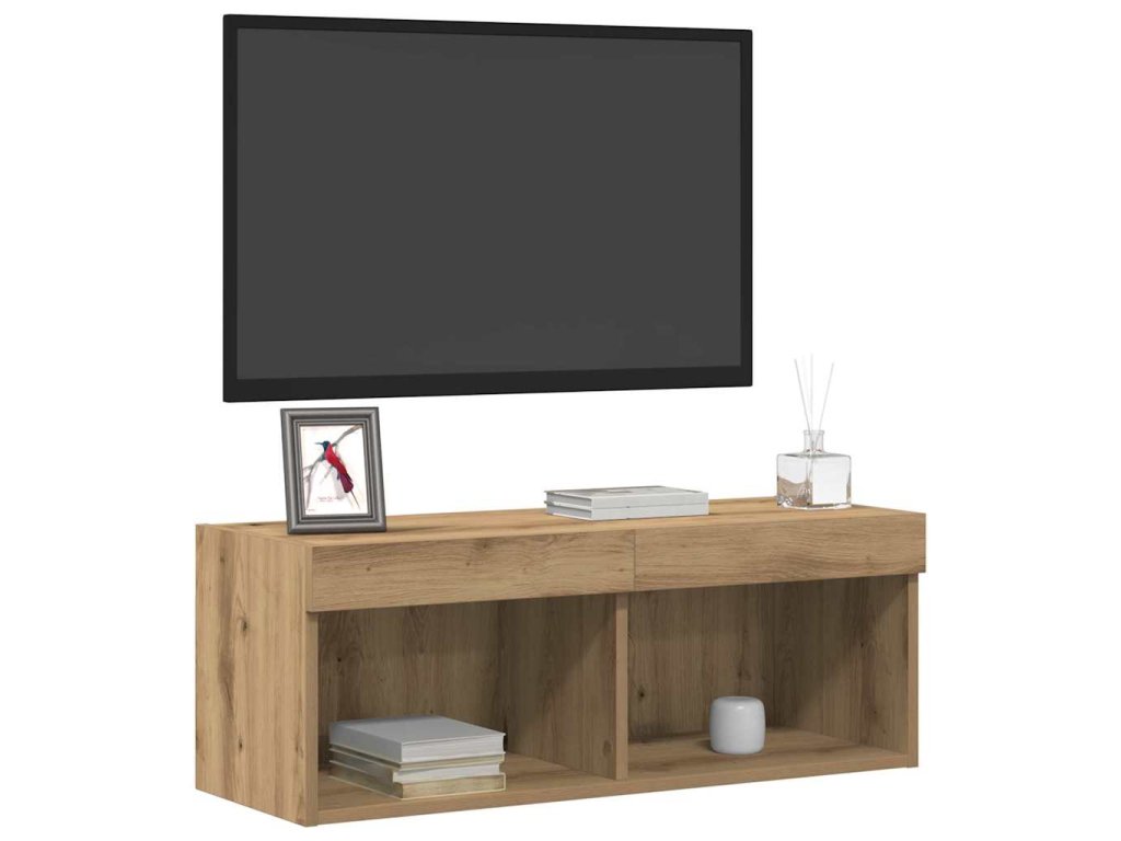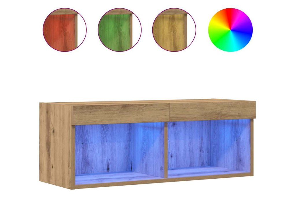 - Součásti: Skříňka má vícero úložných řešení se silnými policemi z kompozitního dřeva a pantovými dveřmi pro snadný přístup. Barevné LED pásky na USB přidávají moderní nádech a nabízí ambientní osvětlení, které zvýší atmosféru podle vaší nálady.