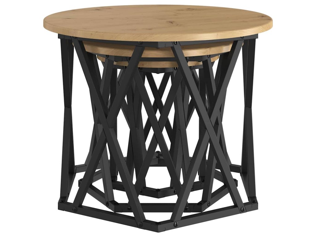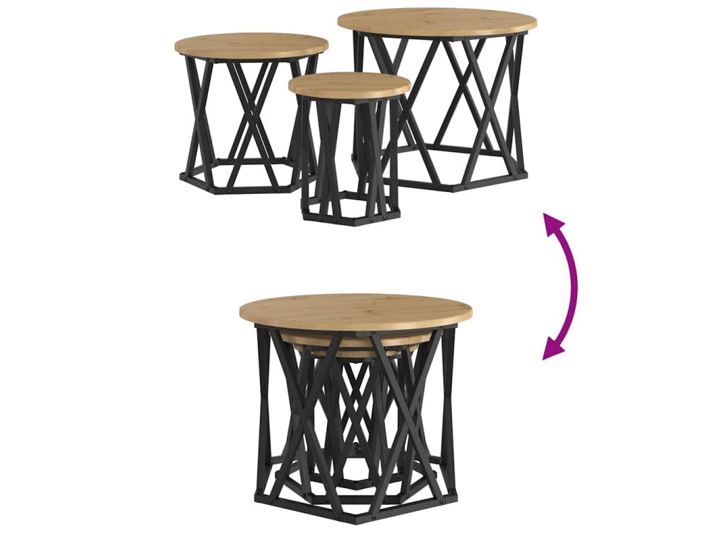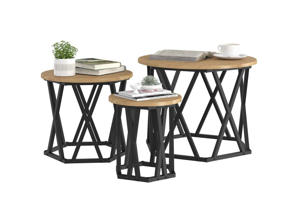 - Součásti: Sada obsahuje tři samostatné stolky, což ti dává spoustu možností, jak si uspořádat prostor. Každý má pevný černý ocelový rám, který poskytuje spolehlivou oporu, ať už je používáš samostatně, nebo dohromady.