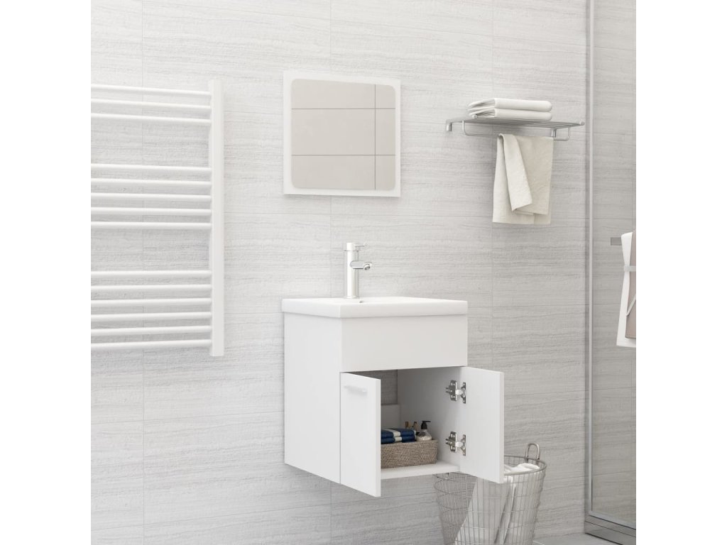 Tento stylový set koupelnového nábytku sestává ze skříňky pod umyvadlo, umyvadla s baterií a zrcadla, které vynikají svým originálním, úhledným provedením. Dokonale se proto hodí do každé koupelny nebo na toaletu.