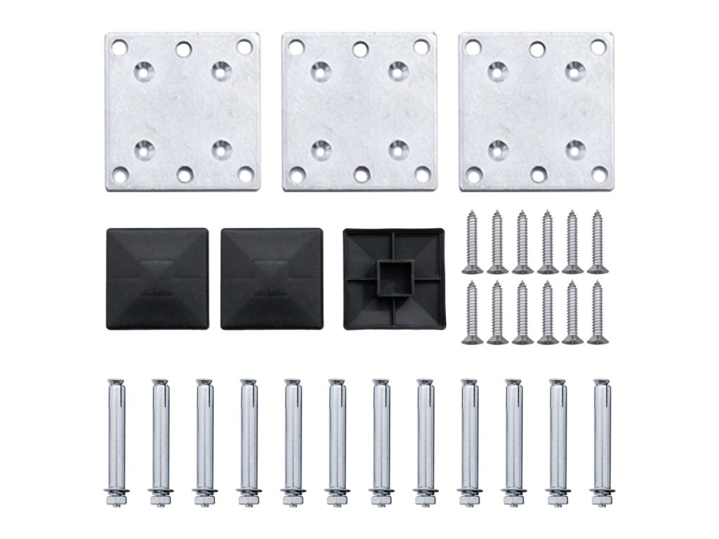 Plotové panely mají modulární design, který umožňuje snadnou instalaci a neomezené prodlužovaní plotu. Sloupky mají tři drážky, takže můžete plot sestavit různými způsoby, například v přímce (180 stupňů), v pravém úhlu (90 stupňů) nebo ve tvaru písmene „T“. Multifunkční ocelové nohy lze upevnit dvěma způsoby. První způsob je našroubovat je na povrch dodanými kotevními šrouby. Druhý způsob je ukotvit je do cementového základu zemním hrotem (není součástí balení).