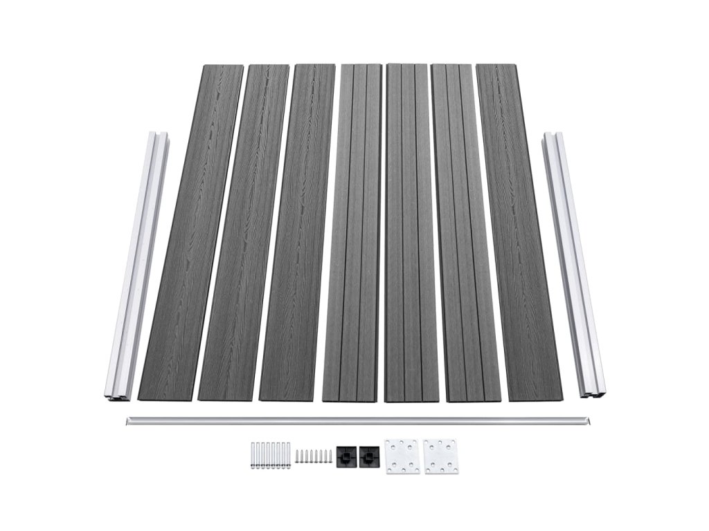 - Materiál: WPC (dřevoplast), hliník, ocel