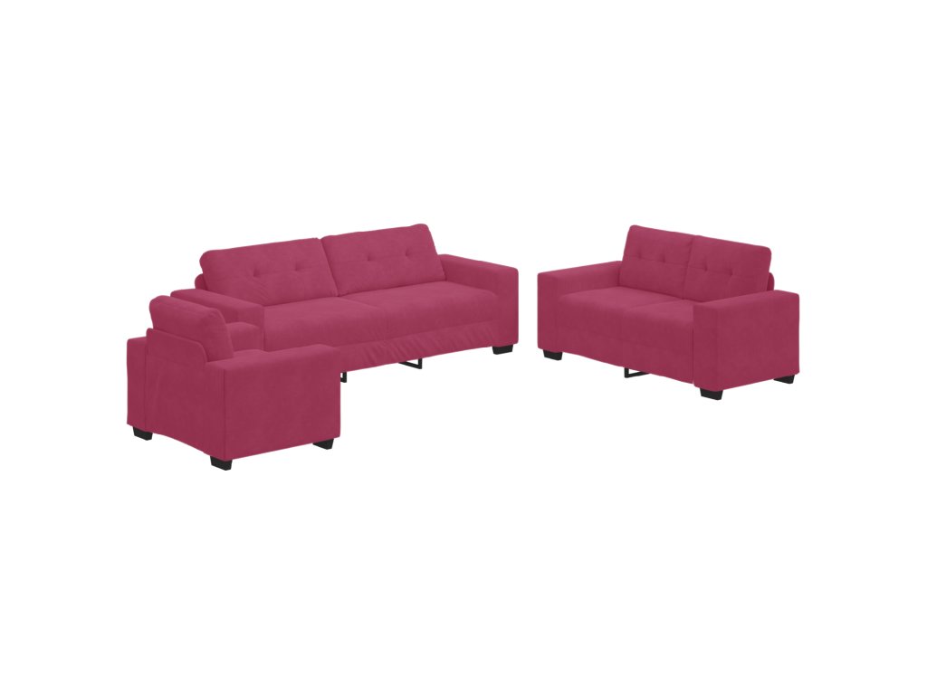 Moderní sametová sedací souprava ve vínově červené je totální esencí stylového pohodlí, ideální pro oživení obýváku nebo kanceláře. S parádním sametovým potahem a pevným kovovým rámem dodává barevný akcent, ale i spoustu místa na sezení idealní pro setkání nebo relaxaci, což z ní dělá skvělý středobod pro tvůj trendy prostor.