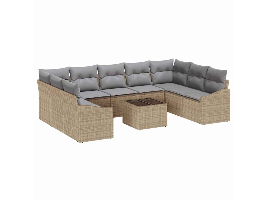 Tenhle zahradní sofa set mění pravidla hry pro venkovní relaxaci se svým prostorným a stylovým designem. Je vyroben z povětrnostně odolného syntetického ratanu v příjemném béžovém odstínu a kombinováno se šedými polštáři, což z něj dělá ideální místo pro shromáždění s přáteli a rodinou.