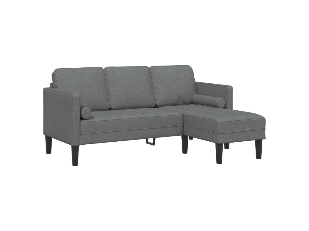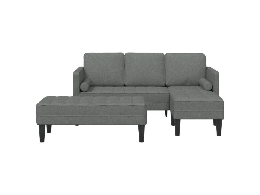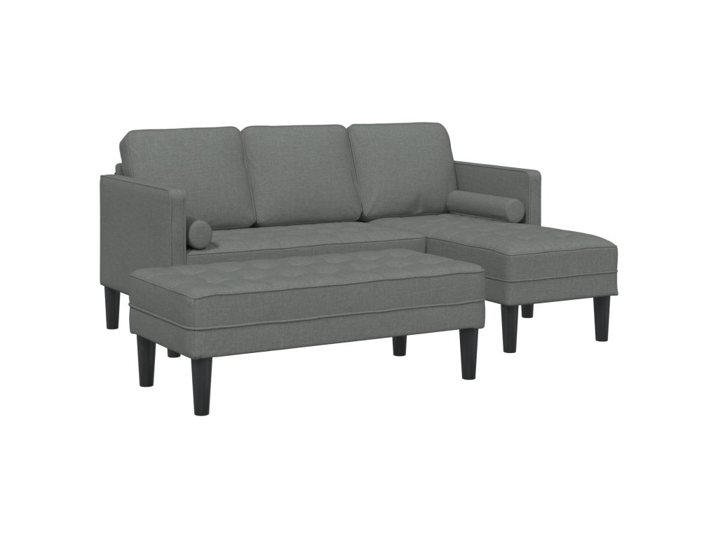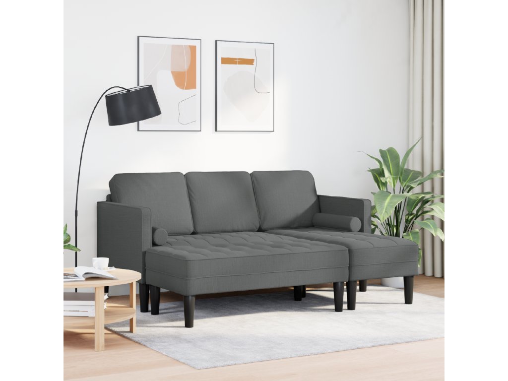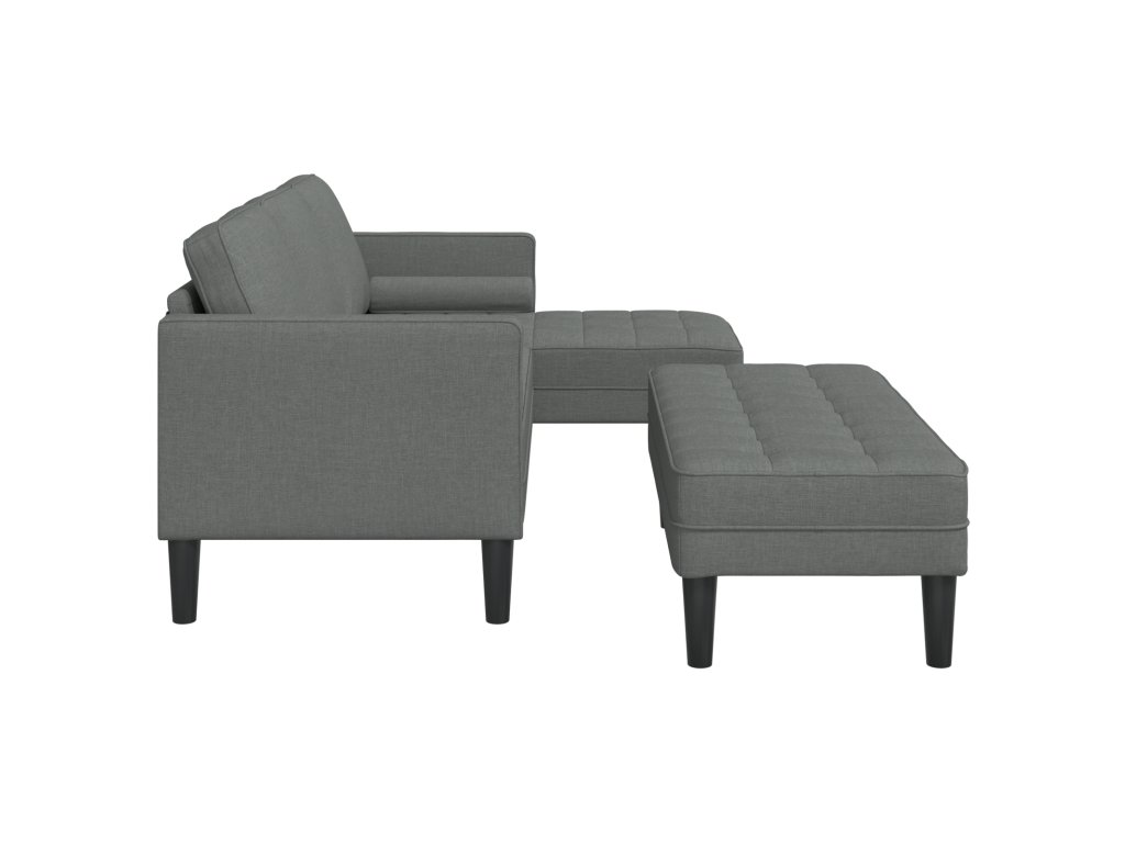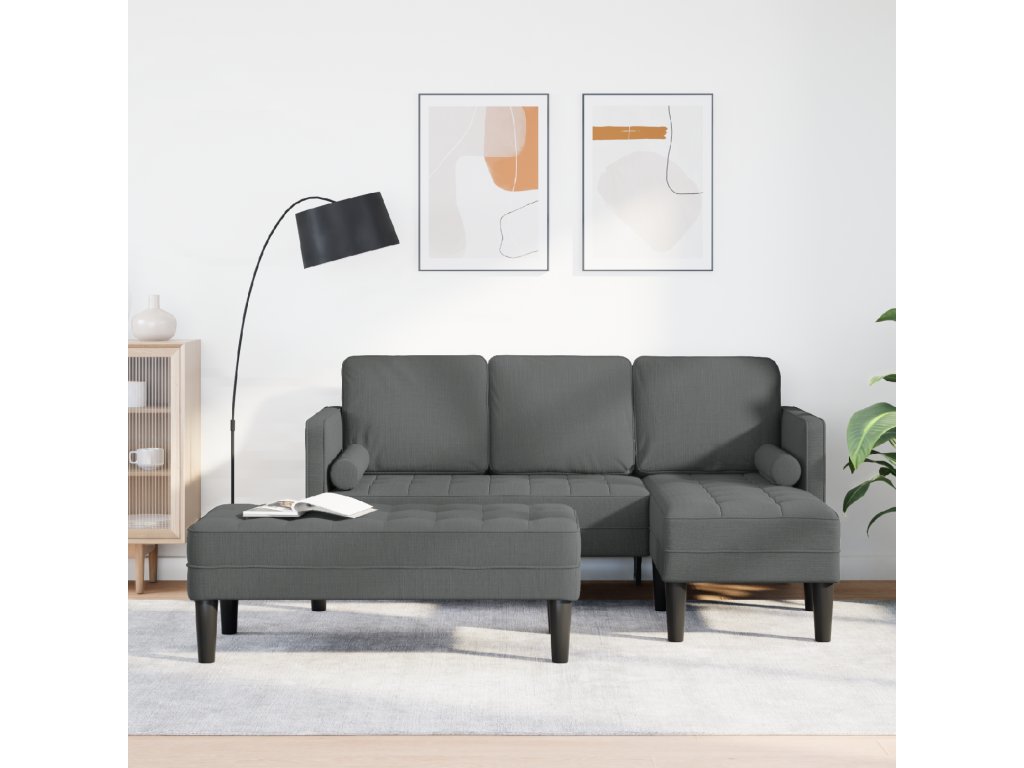 Tato tmavě šedá rohová pohovková sestava spojuje styl a funkčnost. Je skvělá do obýváku nebo prostoru pro setkávání. Díky hladkému polyesterovému potahu a pevnému dřevěnému rámu vypadá skvěle a hodí se k různým dekorativním stylům, vytváří příjemnou atmosféru pro odpočinek a zábavu.