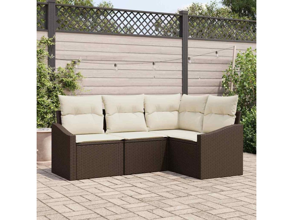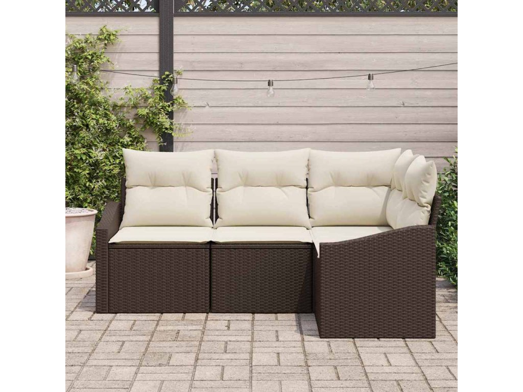 Tato venkovní sekční pohovka je skvělá kombinace pohodlí a stylu pro jakýkoli venkovní prostor. S měkkými béžovými polštáři a hladkým hnědým povrchem je ideální na balkóny a terasy. Nabízí příjemné sezení pro pohodové chvíle na slunci.