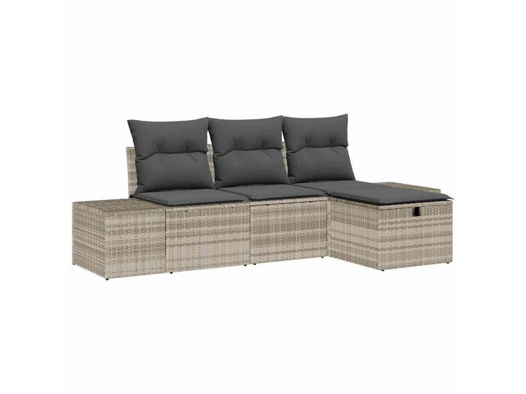 - Praktické úložiště: Sada obsahuje chytré úložné prostory, které ti pomohou udržet pořádek. Každý kousek má voděodolnou tašku na bezpečné uložení polštářů a dalších věcí, což přidává praktičnost na tvoji terasu.