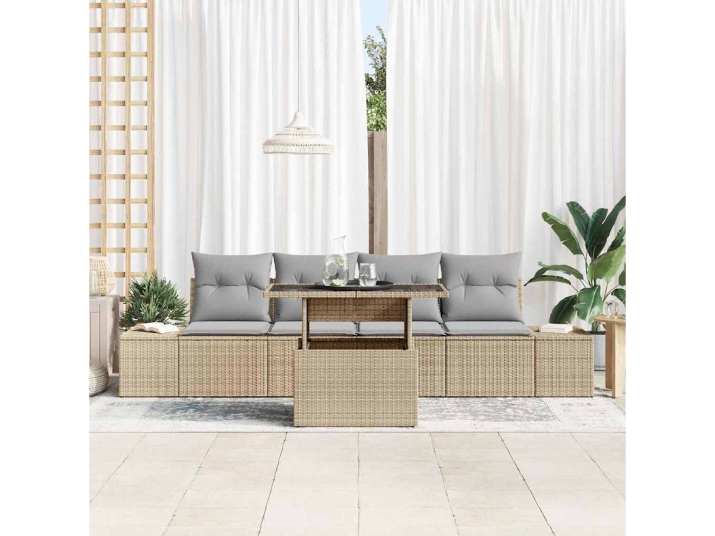 Tato 5 kusová zahradní pohovková sestava klade důraz na styl a praktičnost. Je vyrobena z odolného syntetického ratanu a má skvělé béžové a světle šedé barvy, které se hodí na venkovní posezení nebo odpočinek. Sektorové uspořádání vytváří příjemný prostor, ideální pro přátele a rodinu, kteří si chtějí užít lenošení nebo příjemné konverzace venku.