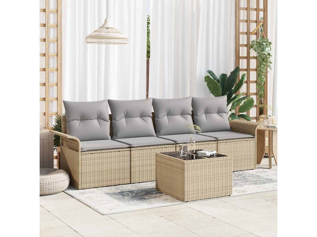 Tahle zahradní pohovková souprava je o všestrannosti a moderním venkovním životě, stvořená pro ty, suitable for co rádi kombinují a přizpůsobují svůj komfort na zahradě nebo terase. Vyrobená z pěkného poly ratanu, který je nejen stylový, ale i odolný, tenhle set obsahuje všechno potřebné: středové sedačky, křesla a praktický stolek. Modulární design vám dává možnost měnit uspořádání, ať už si chcete užít rychlou kávu nebo nezapomenutelný západ slunce s kamarády, nebo si jen tak vychutnat klid o samotě.