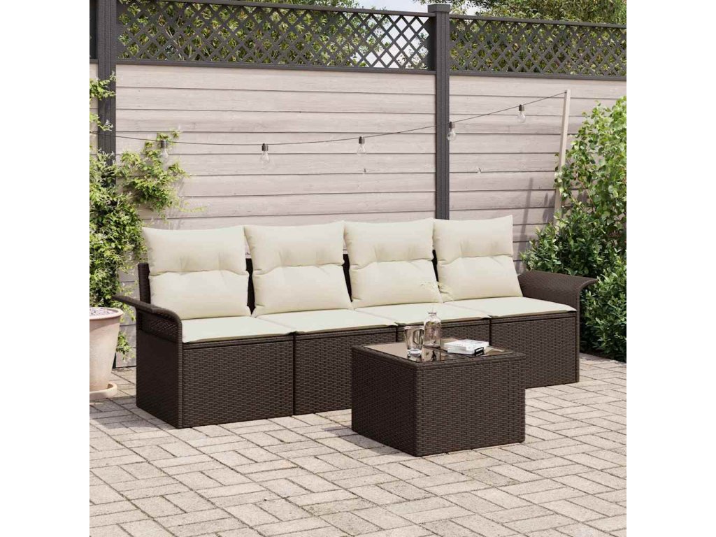 Tahle zahradní pohovková souprava je o všestrannosti a moderním venkovním životě, stvořená pro ty, suitable for co rádi kombinují a přizpůsobují svůj komfort na zahradě nebo terase. Vyrobená z pěkného poly ratanu, který je nejen stylový, ale i odolný, tenhle set obsahuje všechno potřebné: středové sedačky, křesla a praktický stolek. Modulární design vám dává možnost měnit uspořádání, ať už si chcete užít rychlou kávu nebo nezapomenutelný západ slunce s kamarády, nebo si jen tak vychutnat klid o samotě.