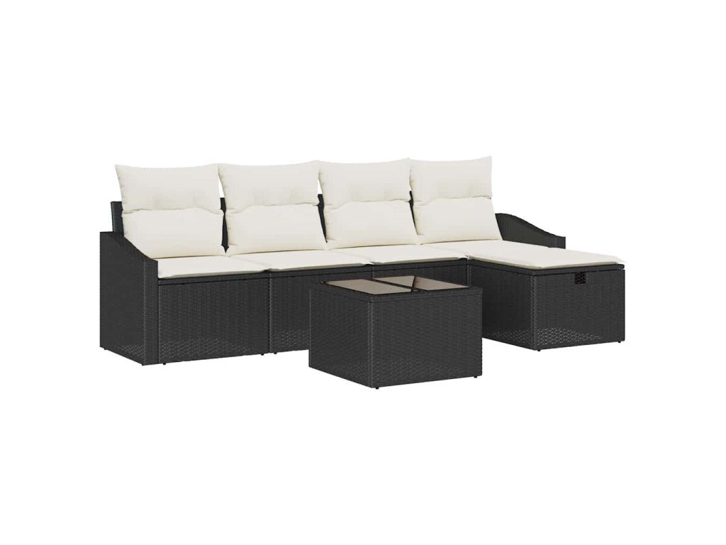 Tato venkovní pohovka dodává eleganci a praktičnost, ideální pro tvou terasu nebo zahradu. S moderním černým poly ratanovým designem a béžovými polštáři zvyšuje jakýkoliv venkovní dekor a poskytuje ti pohodlné místo pro společenské aktivity nebo odpočinek.