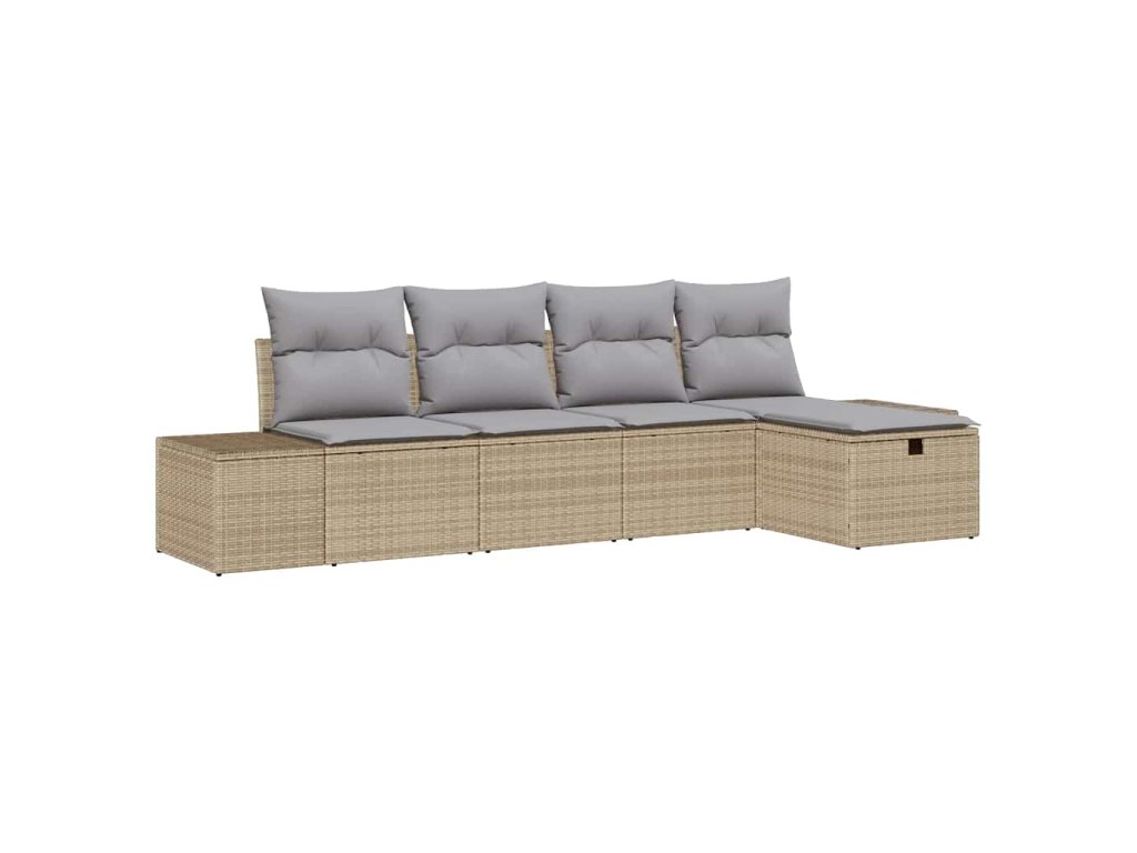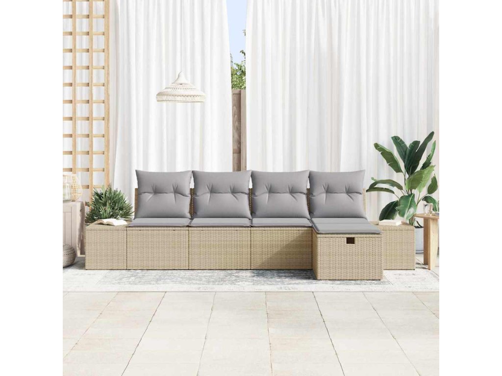- Moderní design: Její elegantní linie a béžová barva s šedými polštáři dodává trendy vzhled, ideální na jakýkoli venkovní prostor.