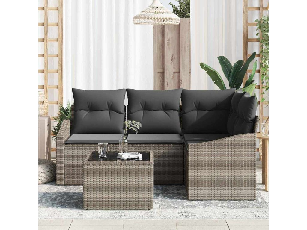 - Pohodlné polštáře: Souprava obsahuje měkké šedé polštáře s ciprem, spojuje pohodlí s nenáročnou údržbou, vyzývá tě k relaxaci venku stylově.