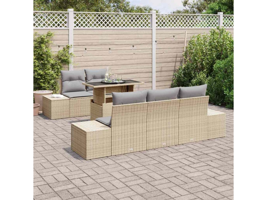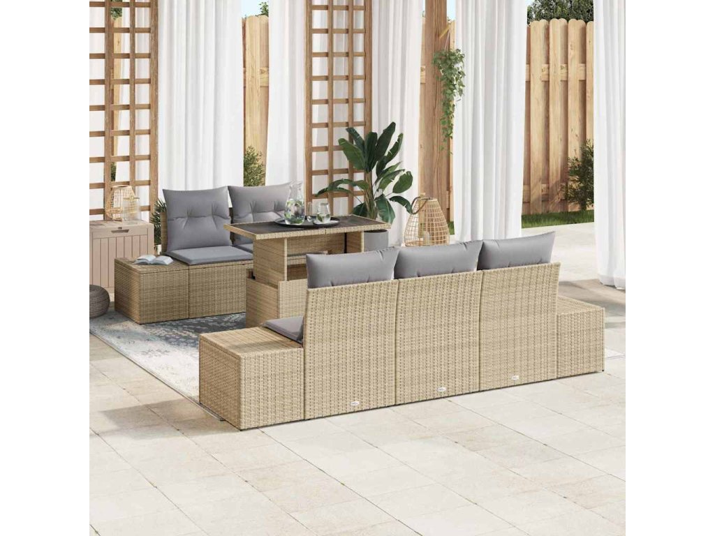 Tato zahradní sedací souprava je super doplněk pro tvůj venkovní prostor. S elegantním béžovým poly ratanem a šedými polštáři jde primárně o pohodlí a styl, ideální pro hostování přátel nebo prostě si užívat knížku.