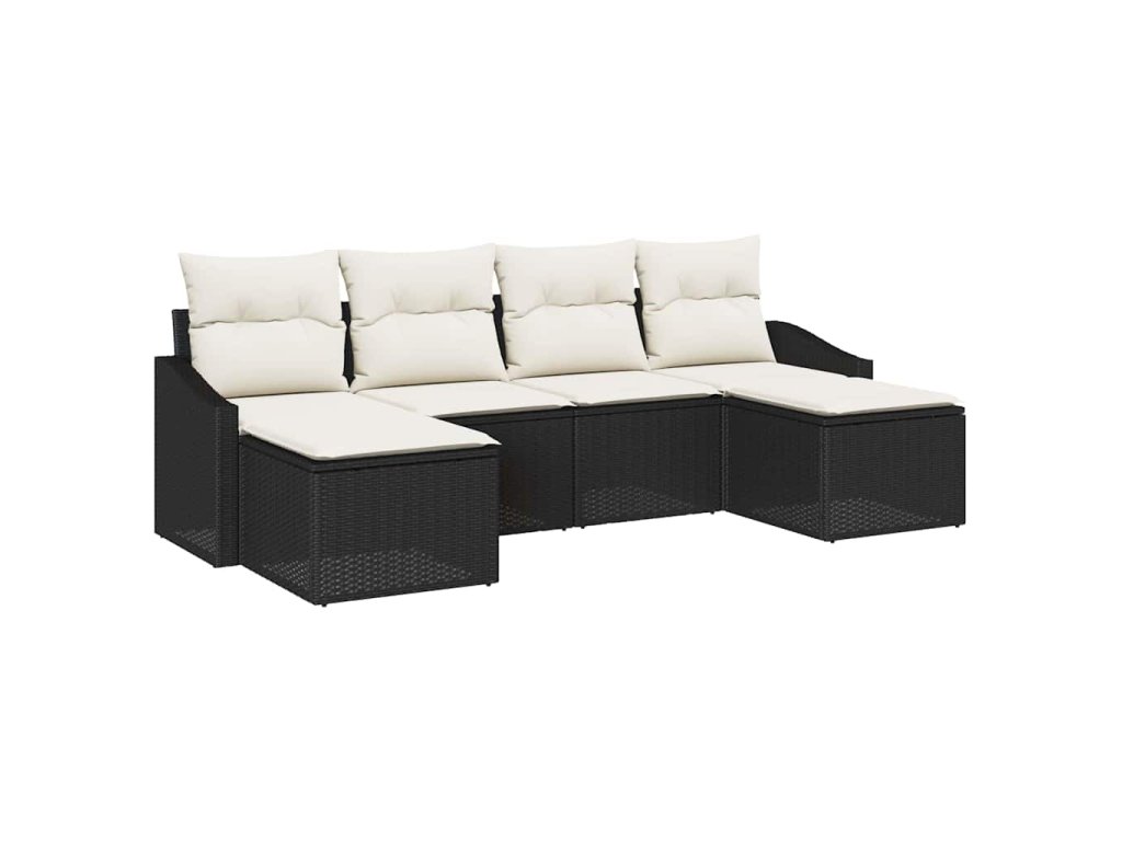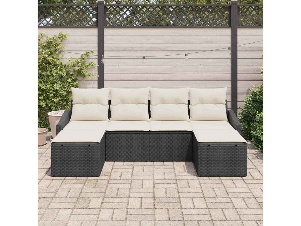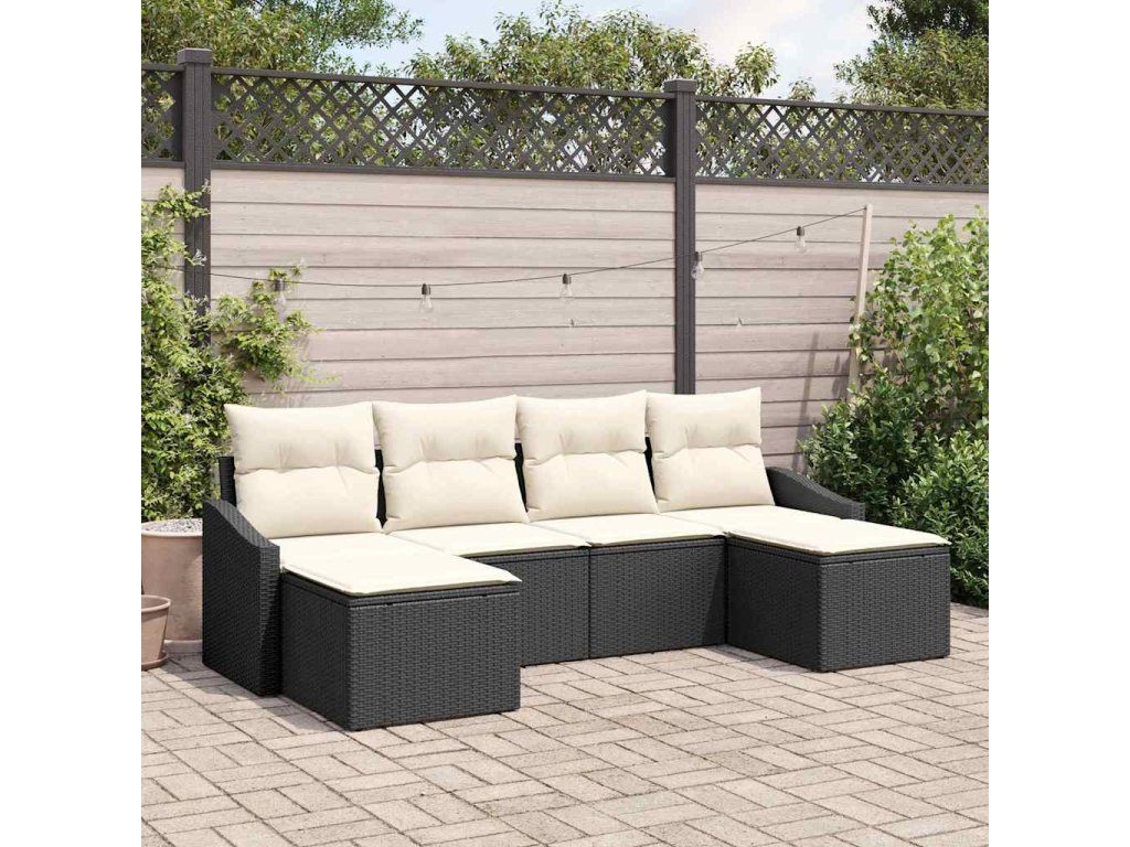 Tato zahradní pohovková sada se skládá ze šesti kusů, které spojíš do krásného venkovního sezení. Ideální na odpočinek nebo hostování. Elegantní černý syntetický ratan a krémové polštáře dodávají moderní vzhled jakémukoli balkonu, takže si můžeš užít slunce nebo hvězdy s kamarády.