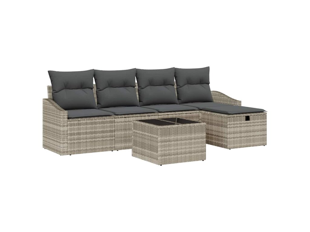 Tato venkovní pohovková sada je stylová a praktická, ideální na vaši terasu nebo zahradu. Moderně vypadá se silným světle šedým poly ratanem, co ozdobí jakoukoli venkovní výzdobu a dá vám pohodlné místo na odpočinek.
