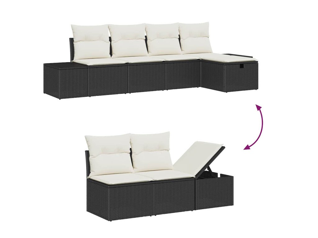 - Úložná funkčnost: Každý kus této pohovkové soupravy má super úložiště s voděodolným sáčkem, ideální pro uchování polštářů nebo osobních věcí. To pomáhá udržet tvůj prostor v pořádku a chrání polštáře před počasím.