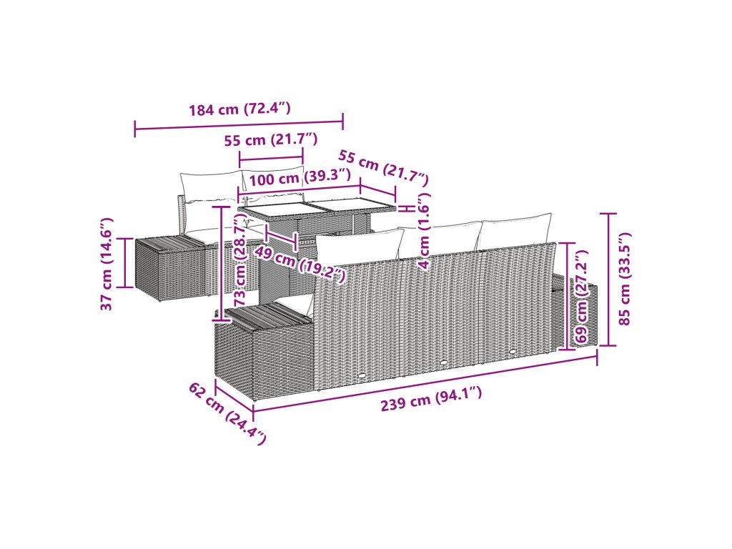 - Dodávka obsahuje: 1 x Centrální sedadlo, 4 x boční sofa, 1 x stůl