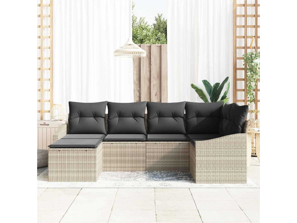 Tato venkovní sekční pohovka vypadá fakt skvěle v jakékoli zahradě nebo na terase. Spojuje praktičnost s trendy designem. Je vyrobeno z kvalitního polyratanu a stylových světle šedých a černých polštářů, takže zapadá do různých venkovních prostředí a poskytuje útulné místo pro relaxaci s rodinou a kamarády.