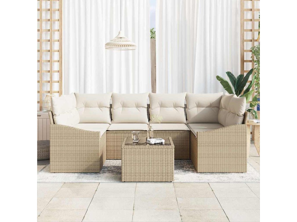 - Komplexní komponenty: Souprava obsahuje dobře navržené rohové a středové sedáky a pohovky vyrobené z poly ratanu s lehkým polstrováním. Každý kus nabízí pohodlí a styl. K tomu je tu stůl se skleněnou deskou, ideální na občerstvení nebo ozdoby.