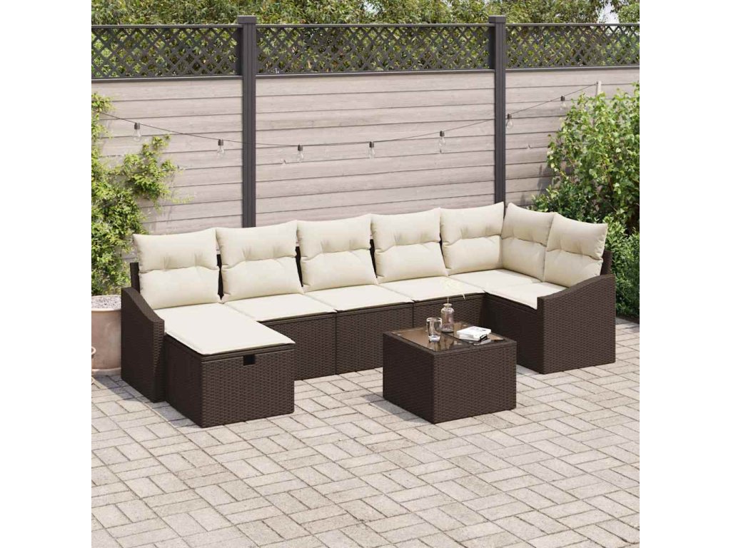 Sada zahradní pohovky vidaXL se 8 kusy spojuje moderní design s praktičností a pohodlně pojme až pět lidí. S elegantním hnědým vzhledem a měkkými béžovými polštáři dodává tahle sada venkovnímu prostoru teplo a styl — ideální na letní lenošení.