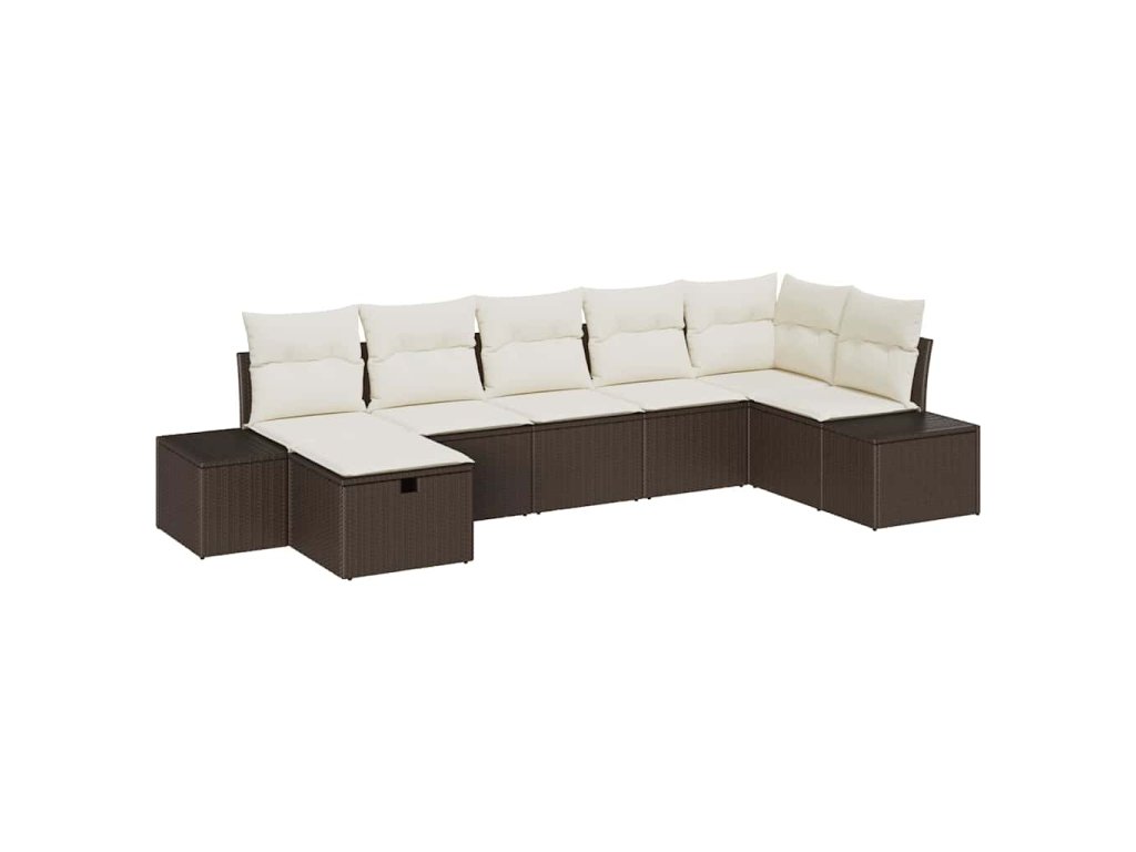 Tato 7dílná sada zahradních pohovek je trendy volba pro venkovní sezení, která fakt oživí tvou terasu. S hezkým hnědým poly ratanovým povrchem a měkkými krémovými polštáři vypadá skvěle a poskytuje ti pohodlí, zatímco relaxuješ venku.