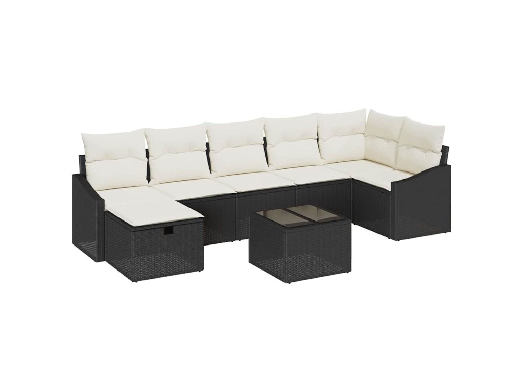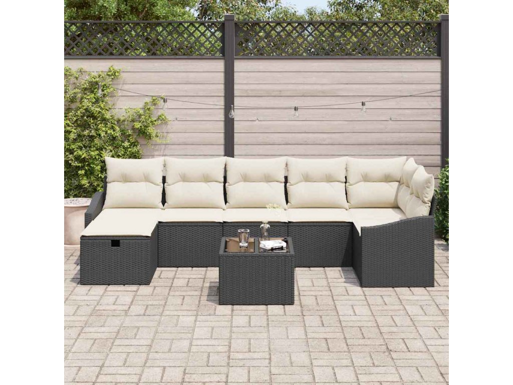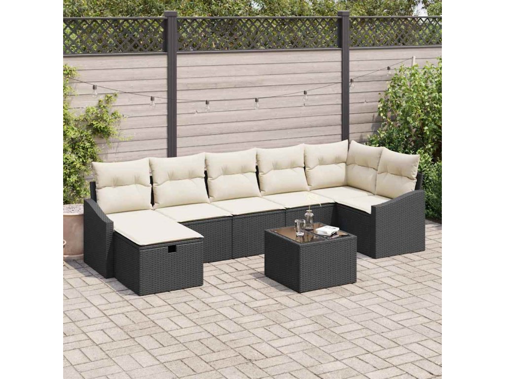 Tento zahradní pohovkový set je super kombinací stylu a praktičnosti, poskytuje pohodlné sezení pro až sedm lidí. Je to skvělá volba pro jakékoli venkovní místo. S elegantním černým vzhledem a měkkými krémovými polštáři oživí váš patio nebo balkon, dodává moderní atmosféru, ideální pro odpočinek a zábavu.