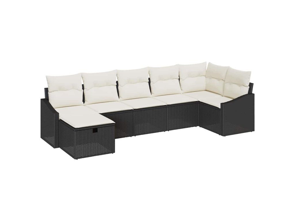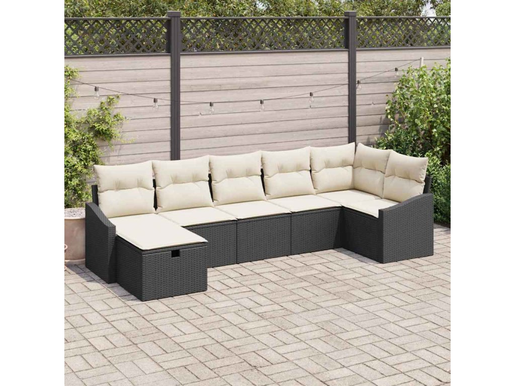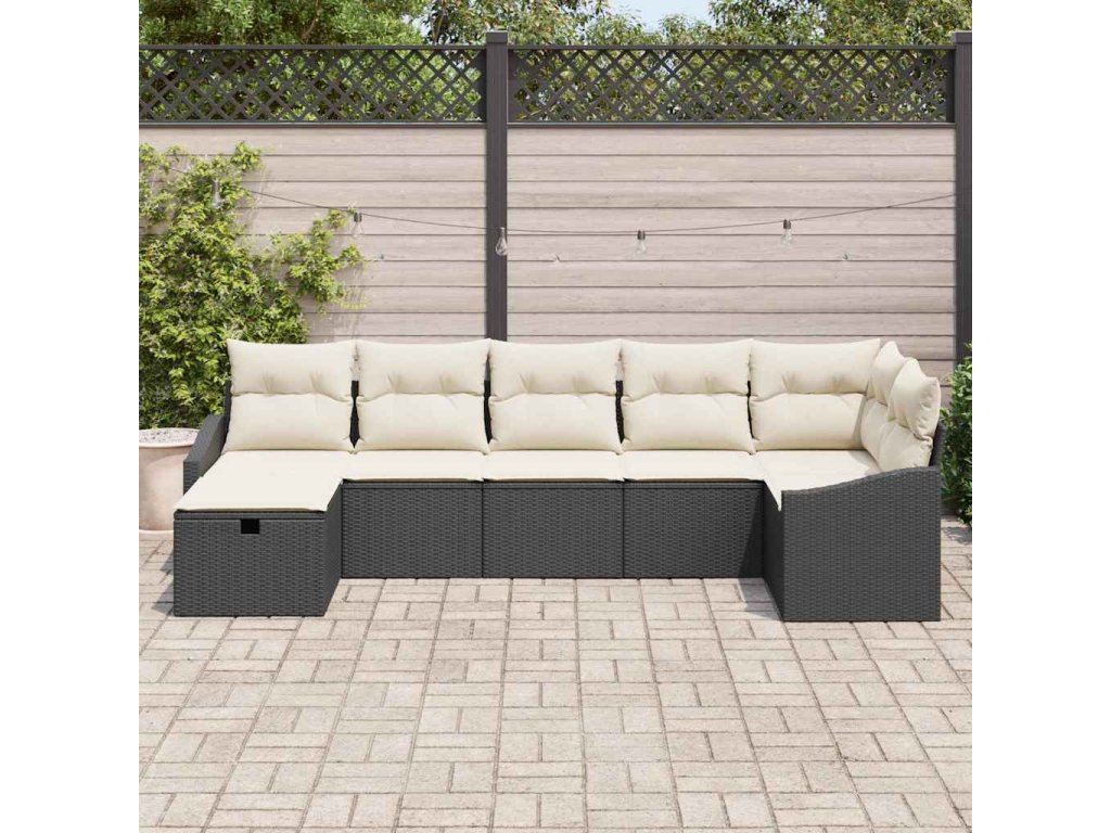 Tato sada zahradní pohovky spojuje moderní styl s praktickými funkcemi, ideální pro osvěžení venkovních prostor. S elegantním černým rámem z poly ratanu a měkkými krémovými polštáři přidává pohodlí a kouzlo, skvělá volba pro váš balkon nebo terasu.
