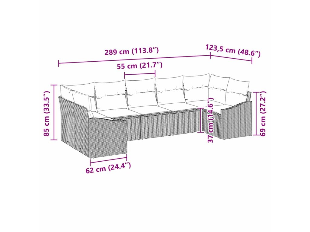 • Prostorné sezení: Bez problému pro 7 lidí, takže si všichni můžou pohodlně odpočinout. Skvělé pro povídání nebo užívání slunce s přáteli.• Odolné vůči počasí: Z prvotřídních materiálů, poly ratan je připraven na UV záření, aby přežil sluneční poškození.