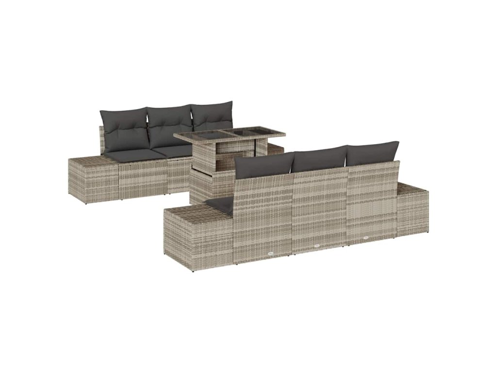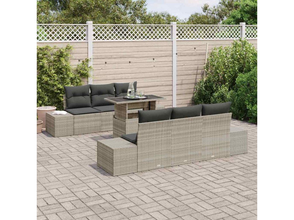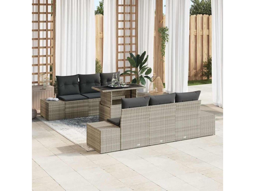 Tahle zahradní pohovka je ideální kombinací pohodlí a moderního designu, takže se skvěle hodí do venkovních prostor jako terasy, zahrady nebo balkony. Díky modulárnímu designu je tahle 7-kusová souprava super snadná na přeuspořádání pro různé akce, poskytuje hodně sezení pro tvé přátele a rodinu, a přitom vypadá skvěle.