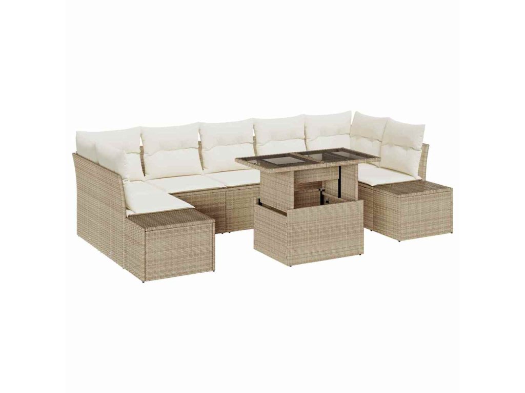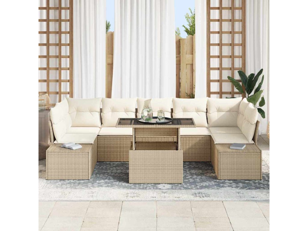 Tahle zahradní pohovka je fajn kombinací pohodlí a moderního stylu, skvělá na živé venkovní setkání nebo relaxaci při klidných večerech. Elegantní béžový poly ratan dodává svěžest, která se hodí do jakéhokoli venkovního prostoru a zlepší šarm vaší zahrady nebo balkonu.