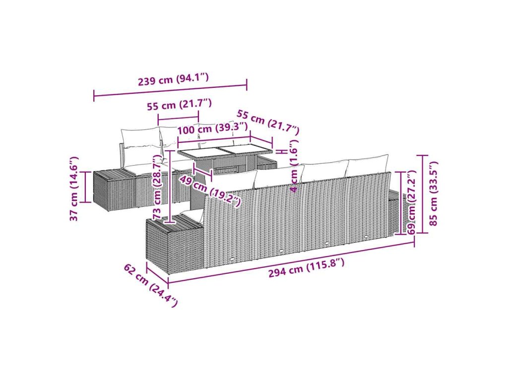 Tento stylový zahradní pohovkový set kombinuje moderní estetiku a praktičnost, což ho dělá skvělým centrem pro venkovní setkání. Je ideální na balkony, terasy nebo do zahrad, vybavenél pohodlnými polštáři, a vyzývá rodinu a přátele, aby si užili kvalitní čas venku.