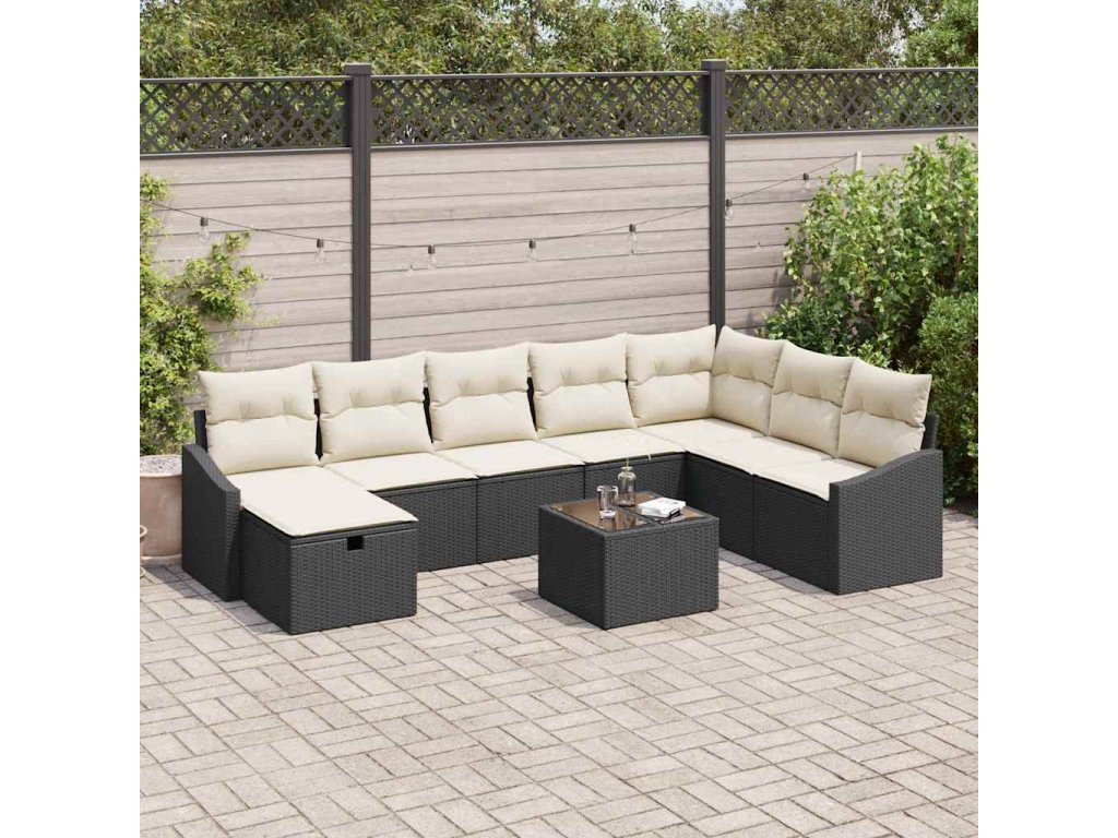 - Dodávka obsahuje: 4 x centrální sedák s úložným prostorem a voděodolným vakem, 1 x rohový sedák s úložným prostorem a voděodolným vakem, 2 x opěradlová pohovka s úložným prostorem a voděodolným vakem, 1 x taburet s úložným prostorem, 1 x zahradní stůl